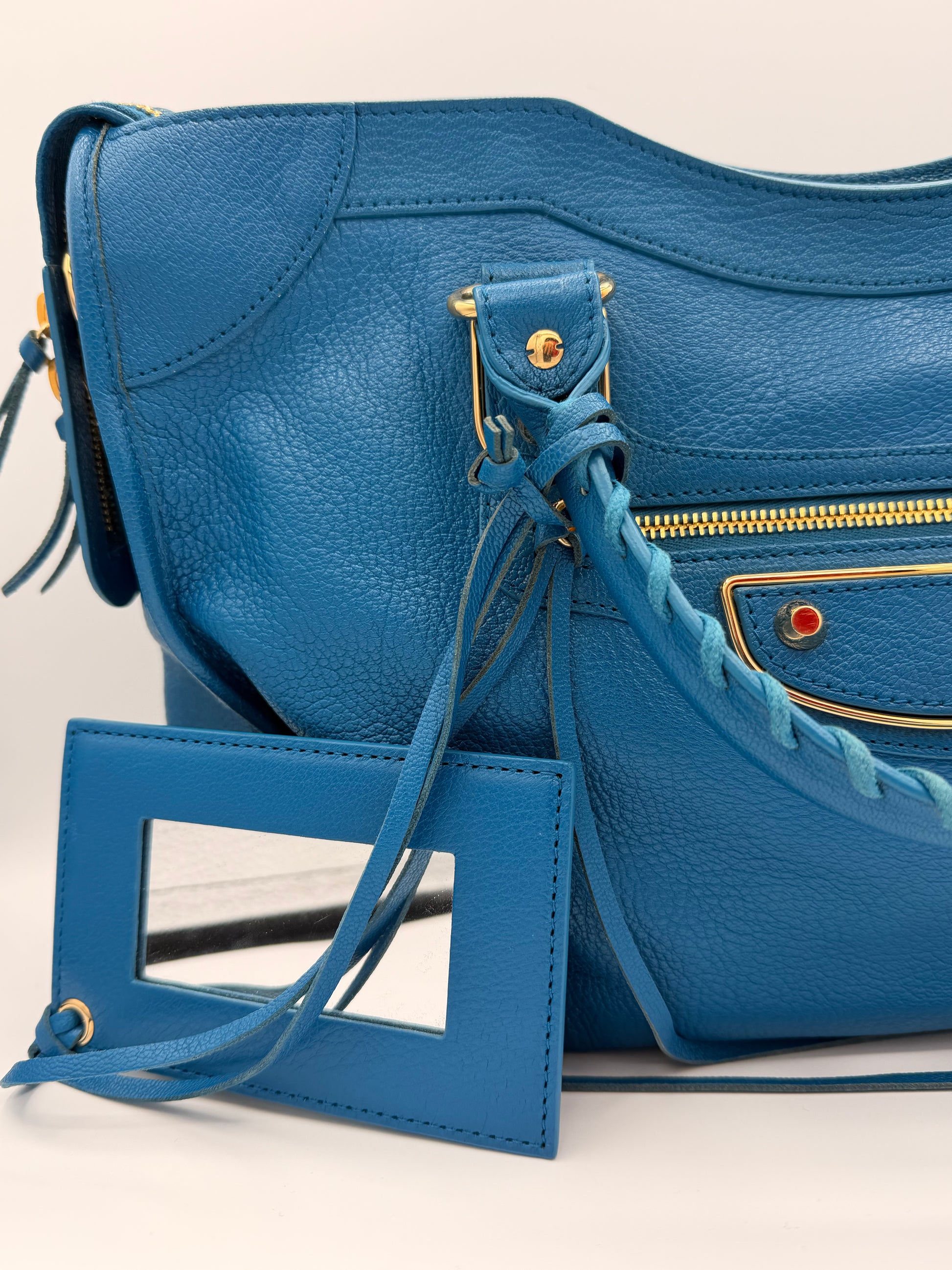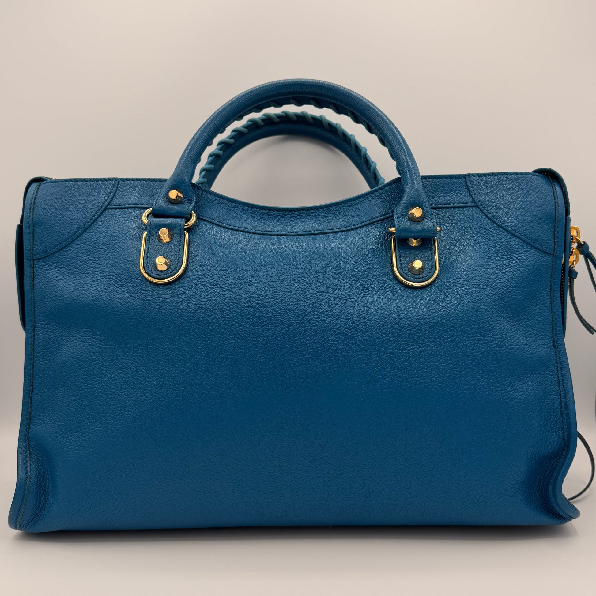 The iconic Balenciaga City Bag in vibrant blue leather preloved and in excellent condition. Featuring gold hardware, braided handles, and that effortless, cool girl attitude you can’t fake.